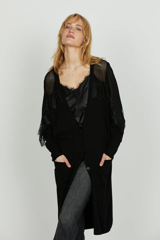 Cardigan MILOS lungo manica lunga con tasche più strass più rotture