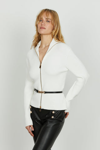 Cardigan MILIONER manica lunga collo alto con zip più cintura con fibbia alamaro