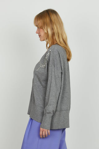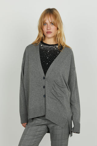 Cardigan VENETICO manica lunga over f.do asimmetrico con applicazione pietre