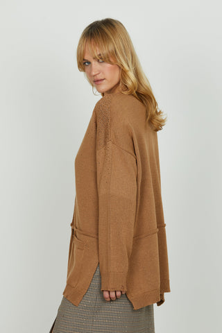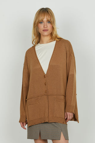 Cardigan SALAMINA manica lunga scollo v con bottoni più tasca più spacchi fondo asimmetrico