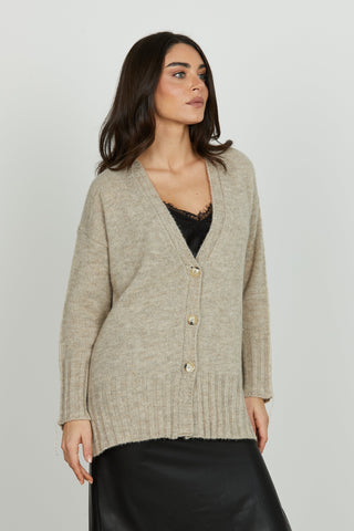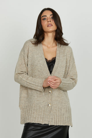 Cardigan CERIGO manica lunga scollo v con bottoni più spacchi fondo più detagli lurex