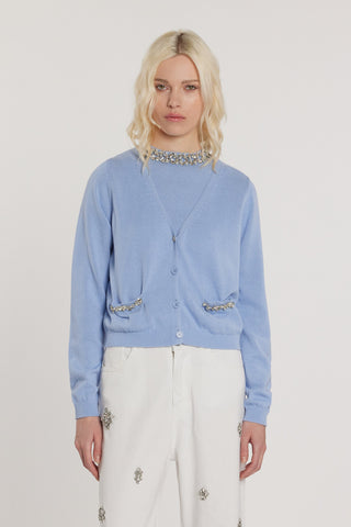 Cardigan MOSS maniche lunghe girocollo con bottoni più applicazioni strass