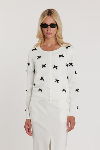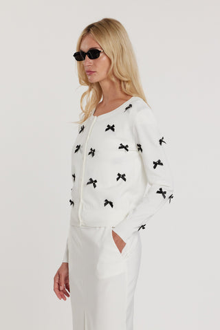 Cardigan RYDER maniche lunghe girocollo con bottoncini più fiocchi più strass