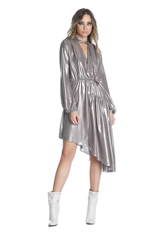 Abito PALER midi manica lunga con arricci scollo incrocio più fusciacca Gonna asimmaniche a balze più arr.