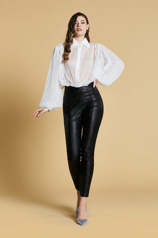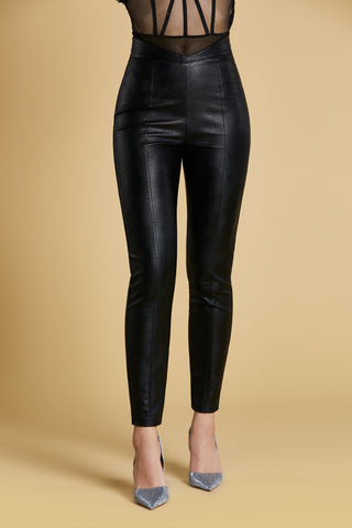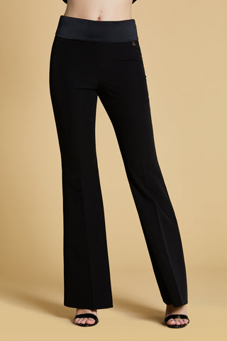 Pantalone ATTICIA vita alta con bustino asimmetrico più tagli ecopelle