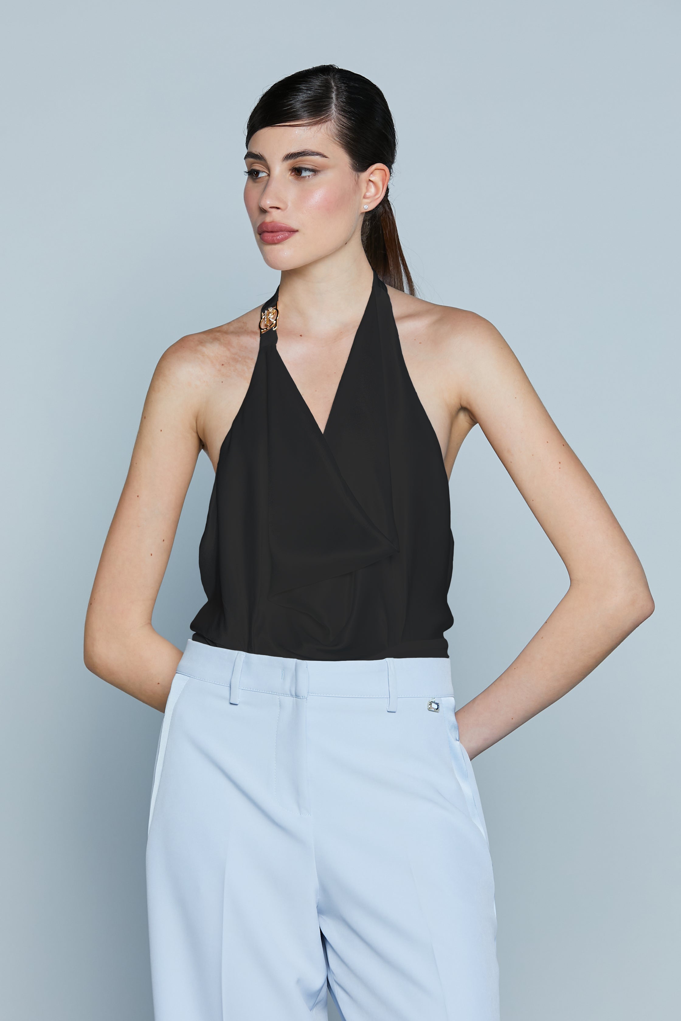 Sensuale ed elegante, il Body TESTY in raso avvolge il corpo con la sua lucentezza, esaltando ogni curva. La scollatura posteriore profonda rivela la schiena con raffinata audacia, creando un equilibrio perfetto tra glamour e seduzione. Indossalo per sentirti sicura, irresistibile e assolutamente unica.
