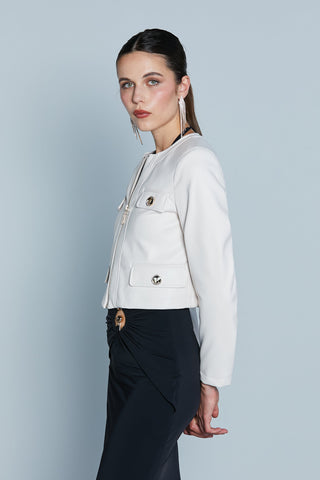 Giubbino CHANNY M/L con Patte più Bott.Gioiello Strass Ecopelle