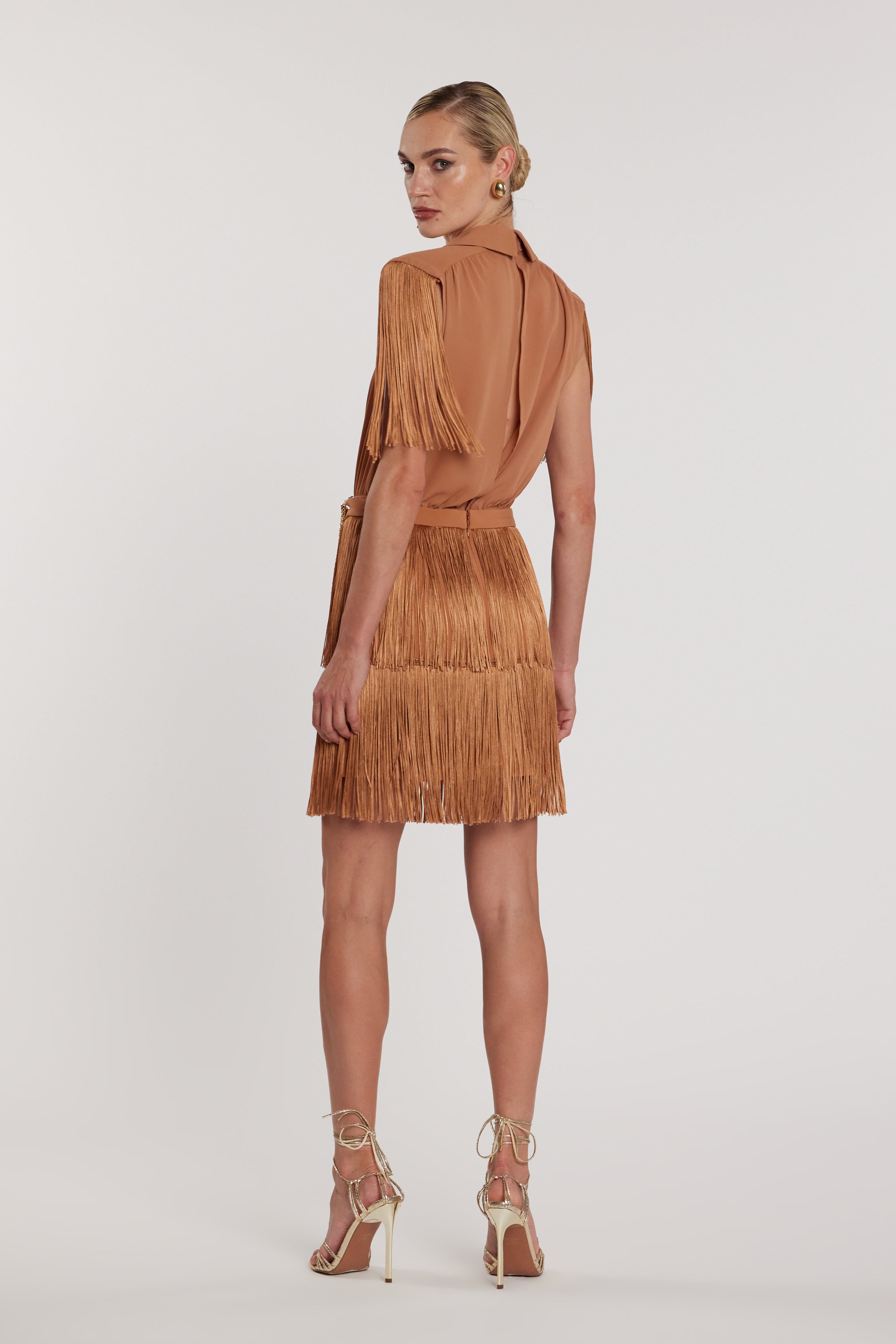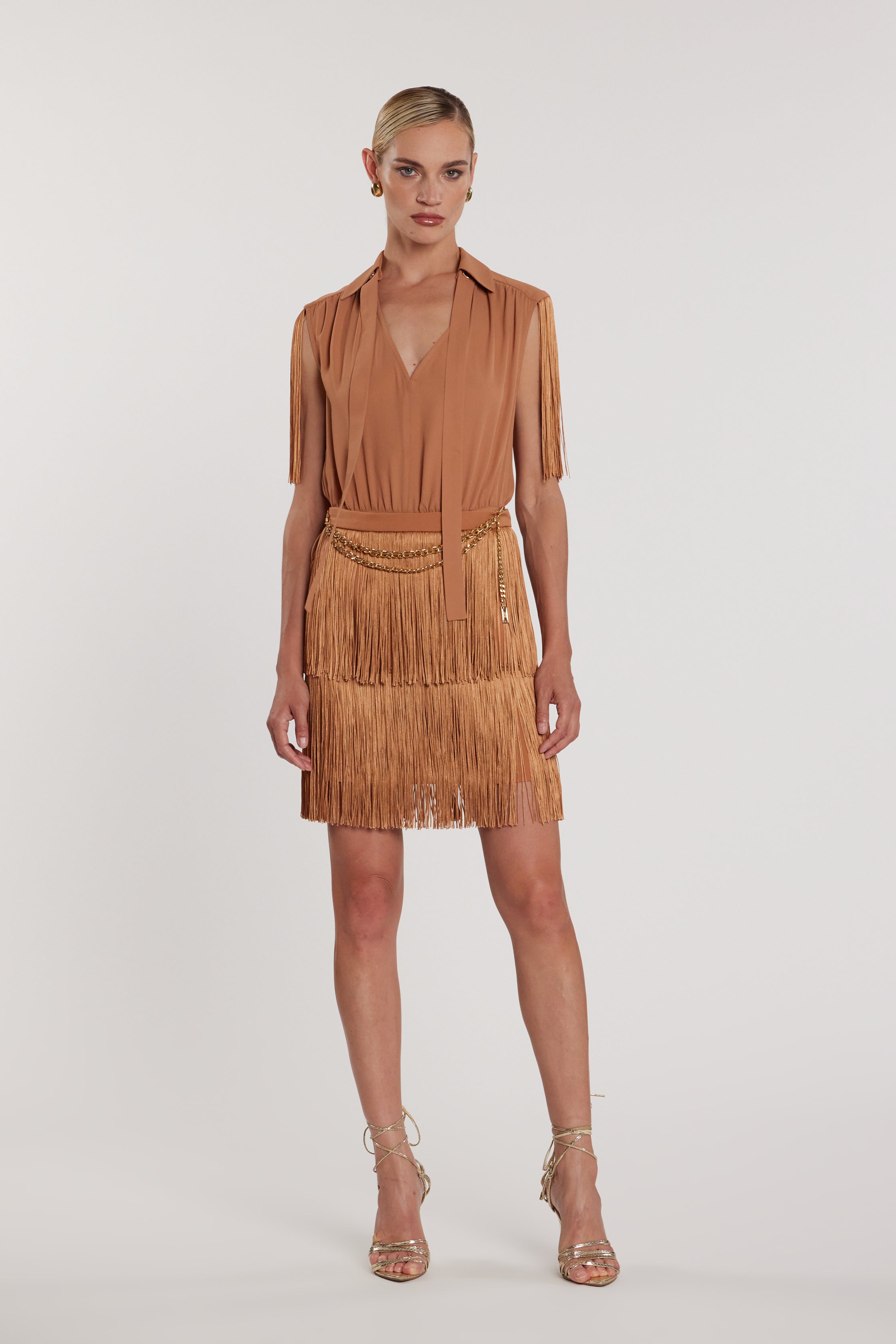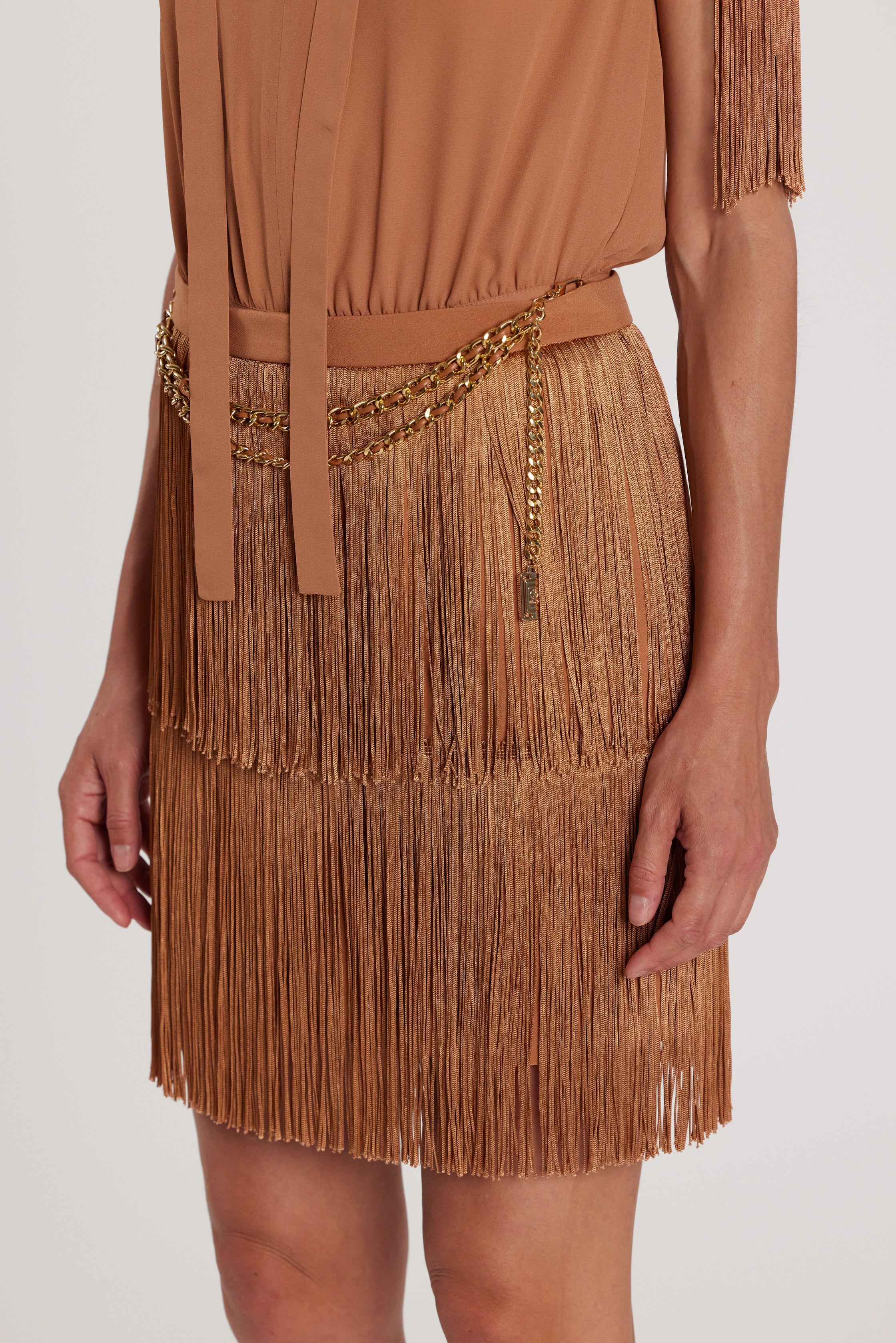 Abito CHANNEL corto tubino scollo a V profondo con frange più catena