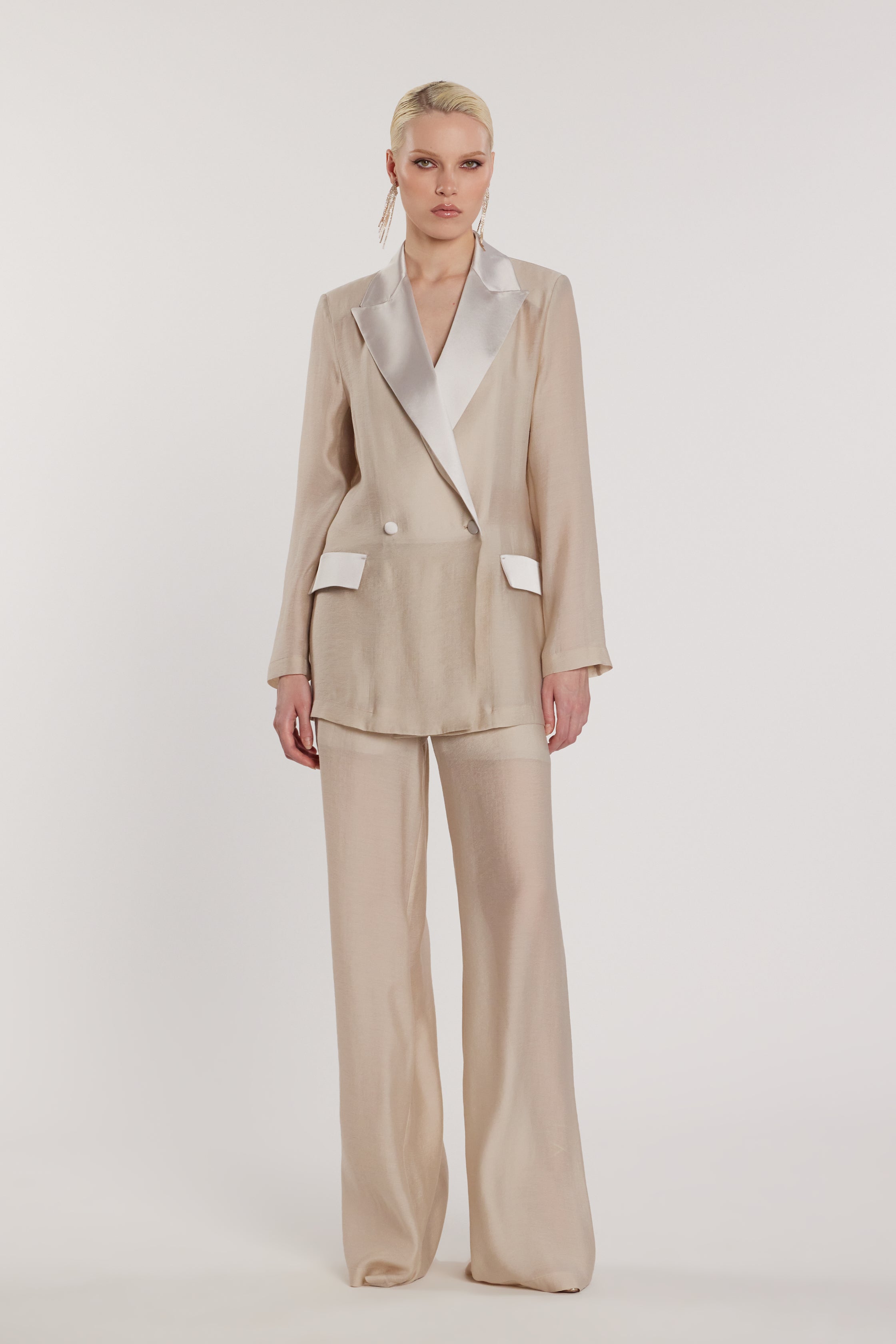 Pantalone ARGENTO vita alta ampia bustino in raso