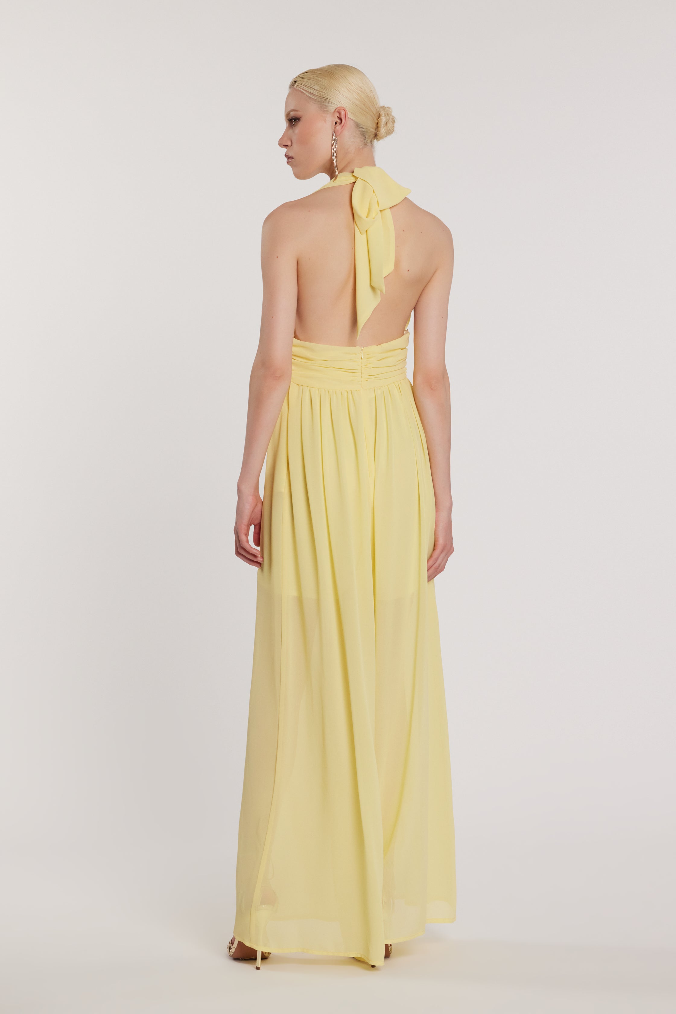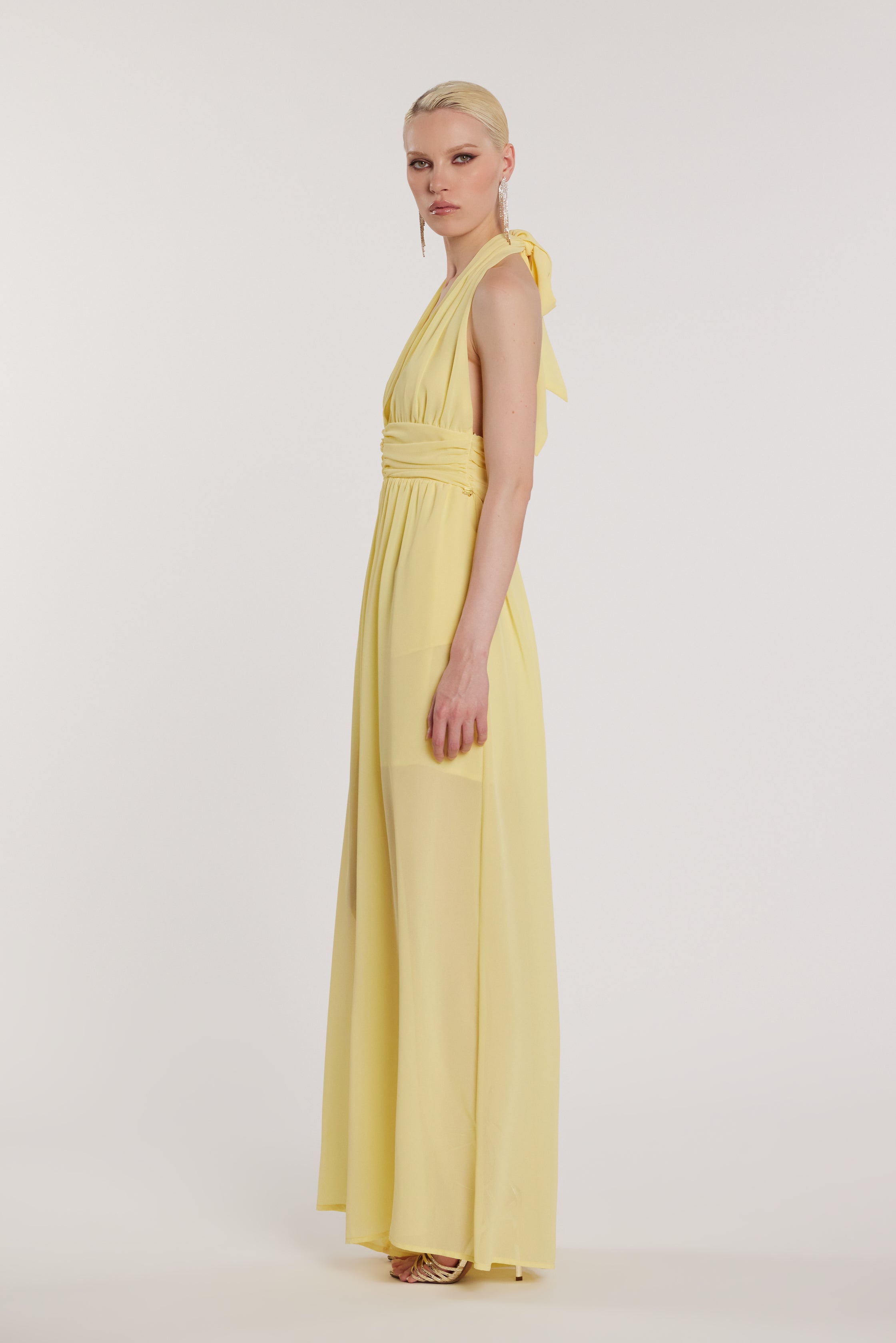 Tuta DESICA vita alta palazzo più plissé scollato sul retro con allaccio al collo
