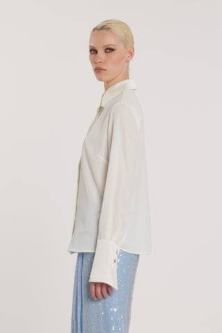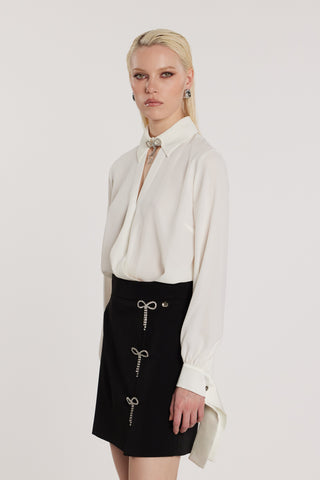 Camicia GHINI maniche lunghe con inserti in raso più spille gioiello