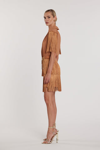Abito CHANNEL corto tubino scollo a V profondo con frange più catena