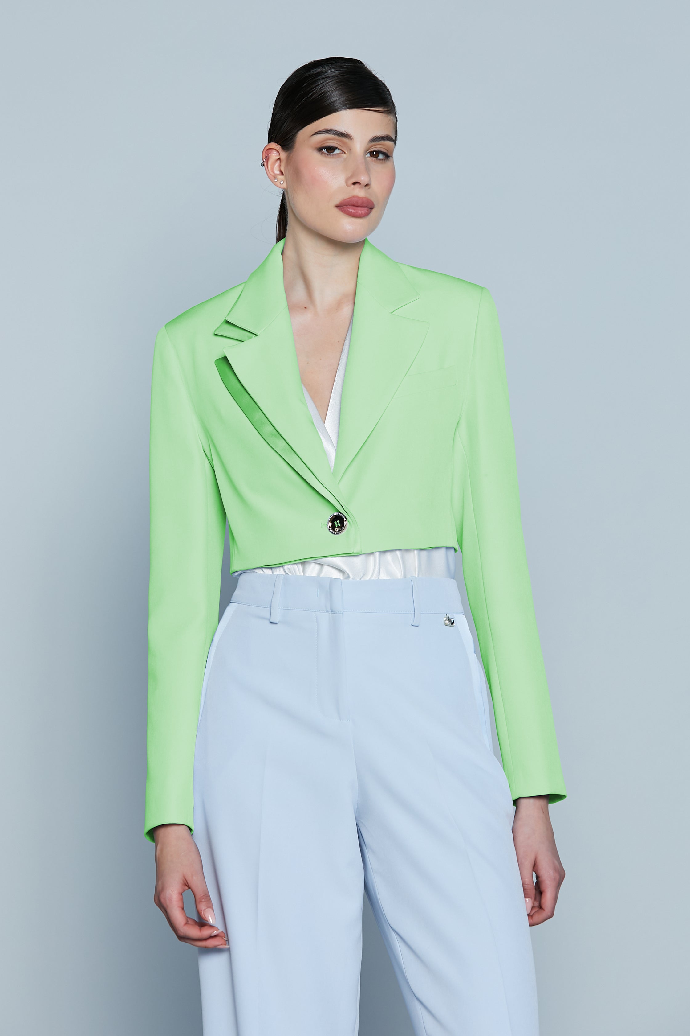 La Giacca ERSILIA_A è un concentrato di eleganza e glamour. I bottoni gioiello con strass aggiungono una luminosità preziosa, trasformandola in un capo sofisticato. Il collo revers in raso dona un tocco di lusso discreto, creando un contrasto raffinato. Perfetta per completare look chic e ricercati, è la scelta ideale per chi ama distinguersi con stile.