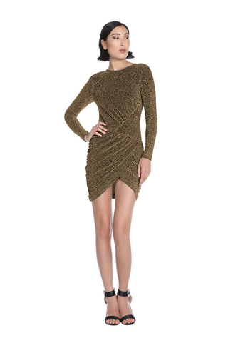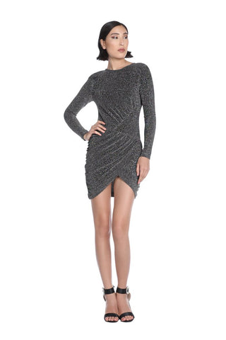 Abito GRYSA corto manica lunga con apert.schiena più dett.rombo più gonna portafoglio lurex