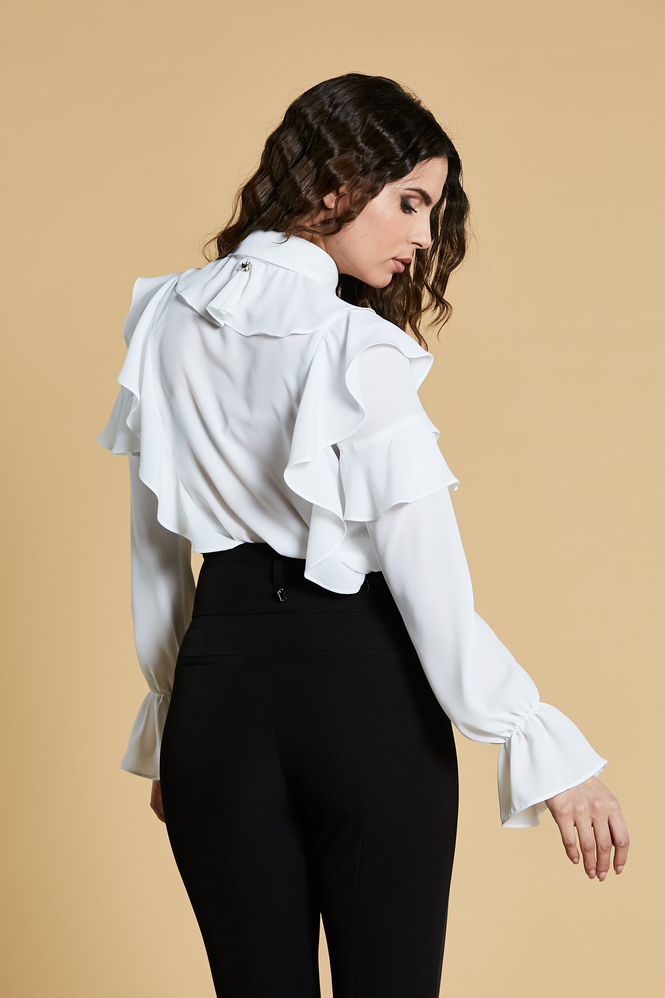 Body TESSE manica lunga a campana con volant più fiocco