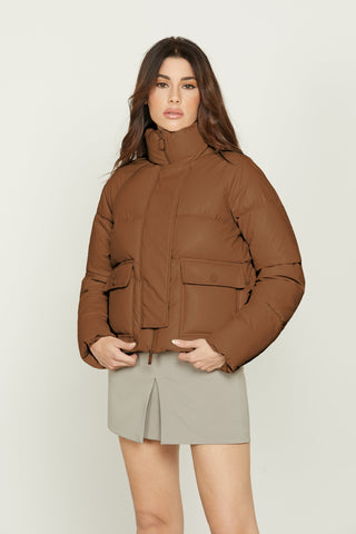 Piumino ALBADAH con manica lunga con cappuccio stac. Più zip più coulisse ecopelle