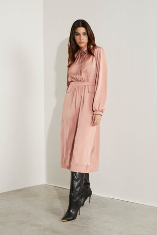 Abito DANBEY_A midi manica lunga palloncino con colletto più bottoni più patte