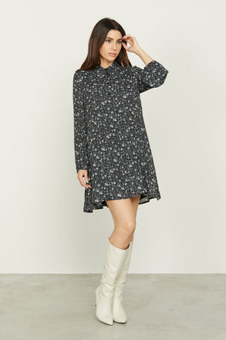 Abito SHITSU corto manica lunga palloncino con arricci più plisse' chemisier fant.fiori