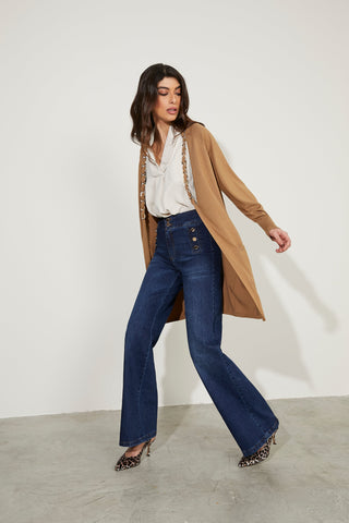 Cardigan PERLA lungo manica lunga kimono con tasche più inserti pizzo