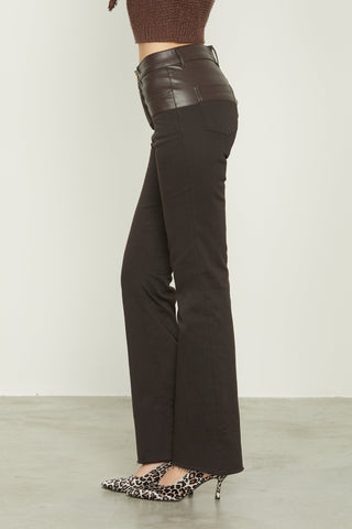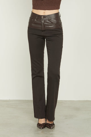 Panta JIJE vita alta zampa 5 tasche con bustino ecopelle più fondo sfrangiato