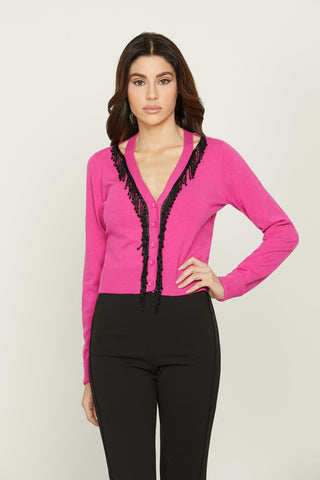 Cardigan VENERE corto manica lunga con risvolto più apert. Spalle più passamaneria perline