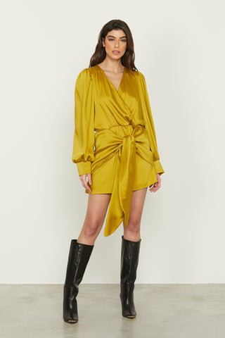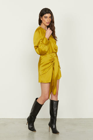 Abito AAMIR corto manica lunga con arricci più goccia più gonna con fusciacca