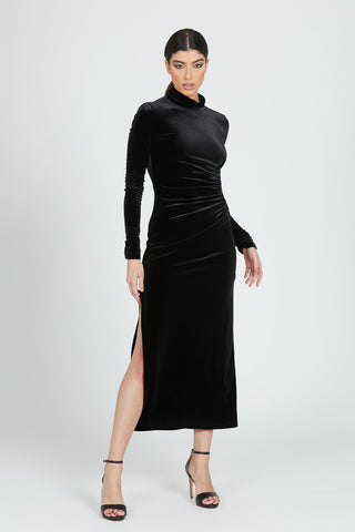 Abito ADDA lungo manica lunga ciniglia con apertura laterale più catena