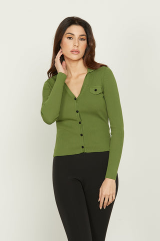 Cardigan TEMI manica lunga con colletto più patte più bottone contrasto costina