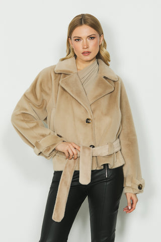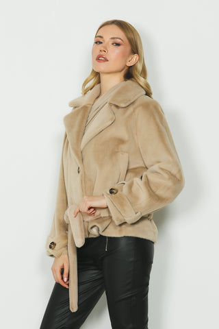 Pelliccia CLEOT eco manica lunga con cinturini più tasche più cintura