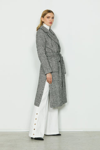 Cappotto CELINE lungo manica lunga doppio petto con tasche toppa più cintura spigato