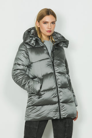 Piumino CLARITA manica lunga con zip senza collo con inserti ecopelle