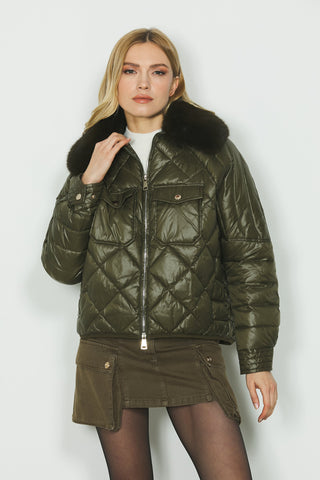 Piumino CALVIN manica lunga pipistrello con collo in ecopellicia staccabile più zip più coulisse