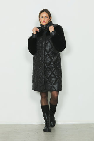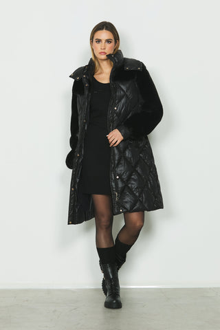 Piumino ADELAIDE lungo manica lunga con inserti ecopelliccia più cappuccio staccabile più ts più cintura
