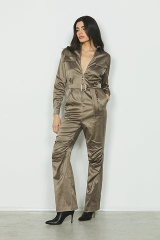Tuta HUDA lunga manica lunga con zip più patte più cintura con pieghe più tagli ginocchia raso