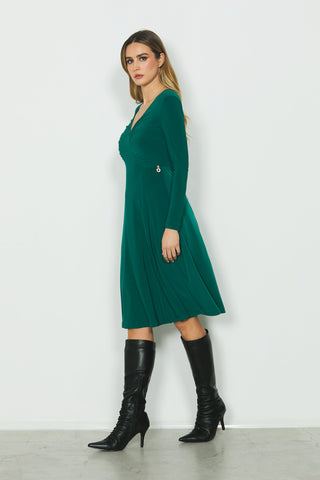 Abito FATIMA midi manica lunga scollo v con pieghe più tagli