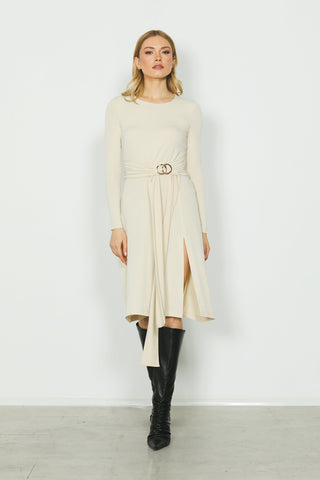 Abito ANNAS midi manica lunga con goccia spalla più vita con coulisse asimmetrico