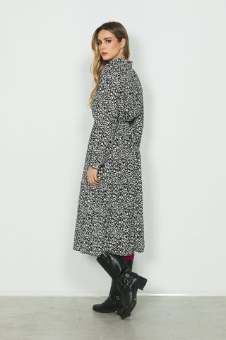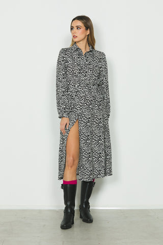 Abito LIAM_A midi manica lunga chemisier con patte più elastico vita fant. Maculata