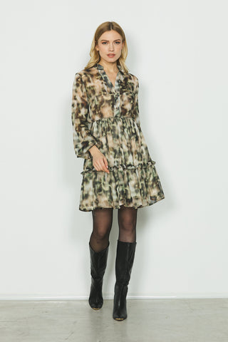 Abito JACOB corto manica lunga con arricci più elastico vita più balze più rouches f.camouflage