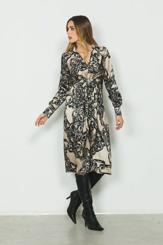 Abito BRIGIDA midi manica lunga con fusciacca vita più elastico fantasia catene