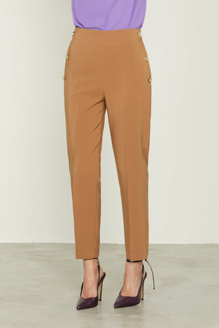 Panta PUENSUM vita alta con elastico più tasche francesi più filetto più bottoni