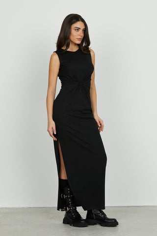 Abito BORLA midi con arricci laterali più apert.schiena più collana strass