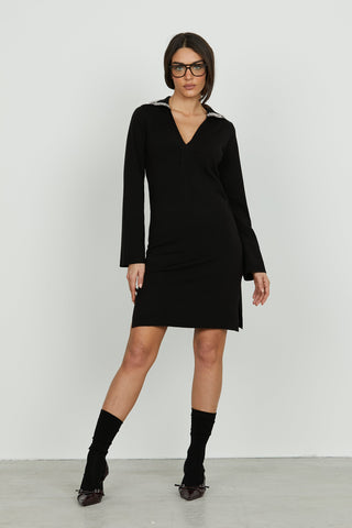 Abito CERRYS corto manica lunga scollo v con colletto più applicazione strass più perline
