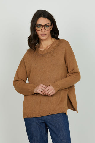 Maglia ARTEMIS lunga manica lunga scollo v righe con lurex più rotture
