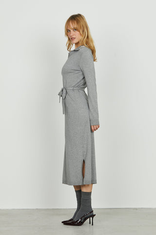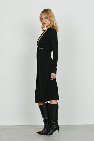 Abito IPSUM midi manica lunga con spacchetto scollo a v con colletto più catena logo asimmetric