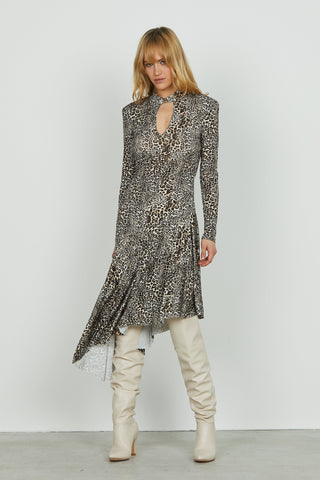 Abito LOVENY midi manica lunga con colletto più gocce seno più schiena asimmetr.f.animalier