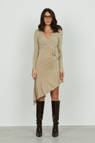 Abito ELITS midi manica lunga scollo incrocio con fusciacca più pieghe asimmetrico