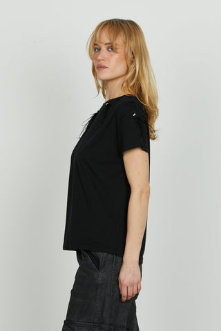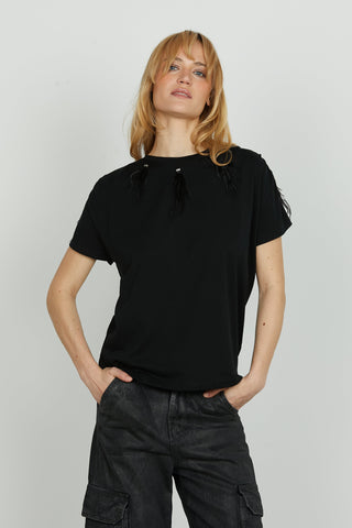 Maglia CRETAS manica lunga girocollo con goccia schiena più applicazione pietre