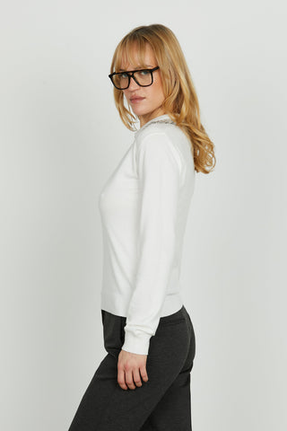 Maglia NIHOA manica lunga scollo v con colletto più applicazione strass