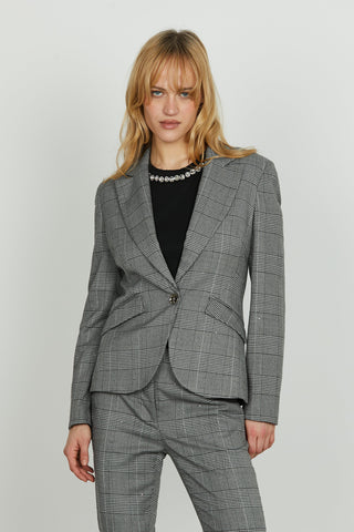 Giacca SKIL_QU manica lunga 1 bottone con tasche oblique micro quadri più paillettes