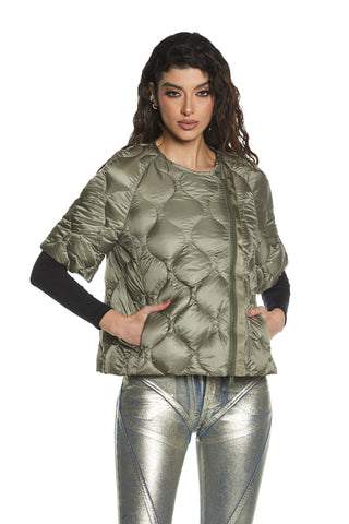 Giubbino GYALANA smanicato con zip più tasche più coulisse asimmetrico piumino superlight